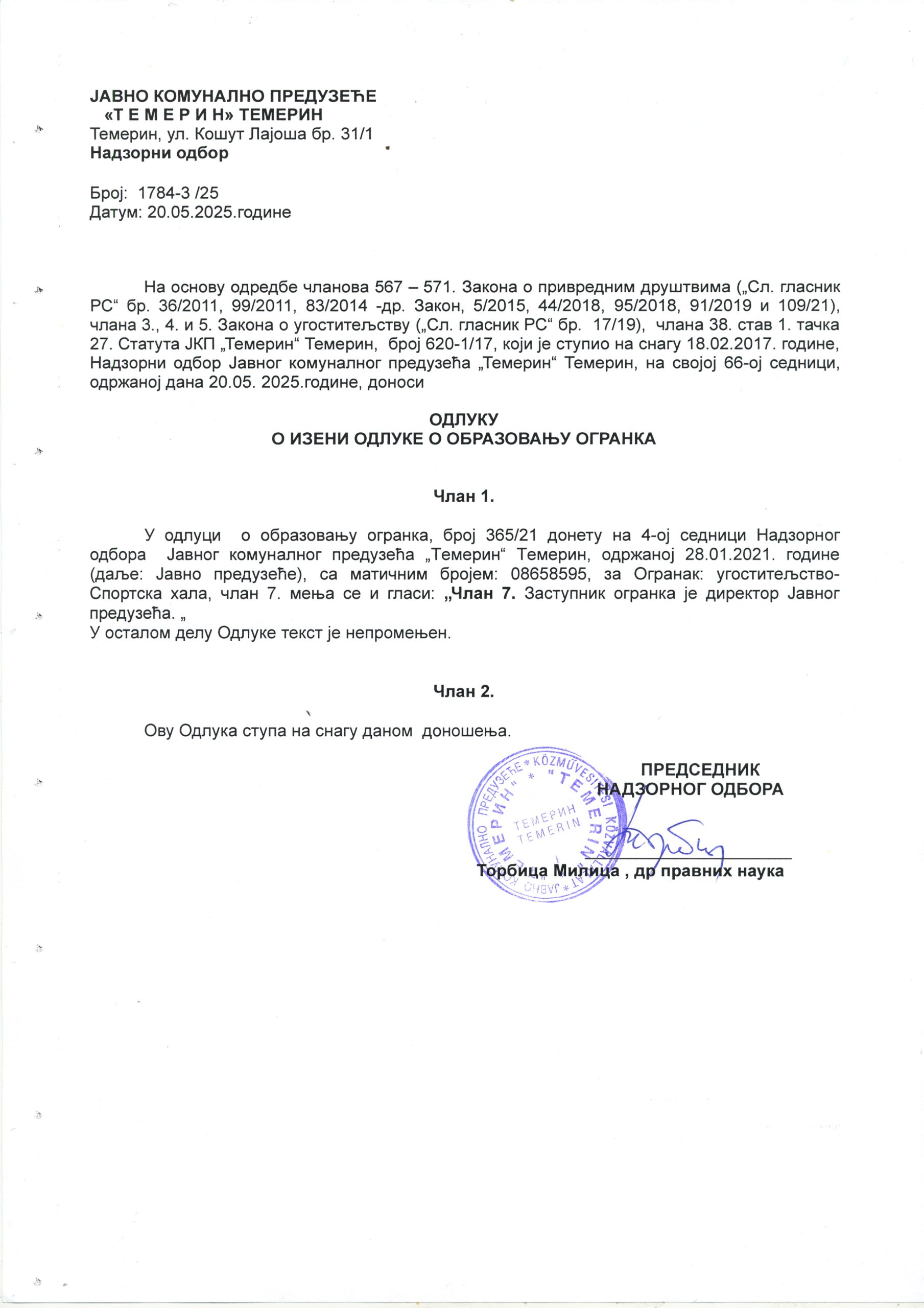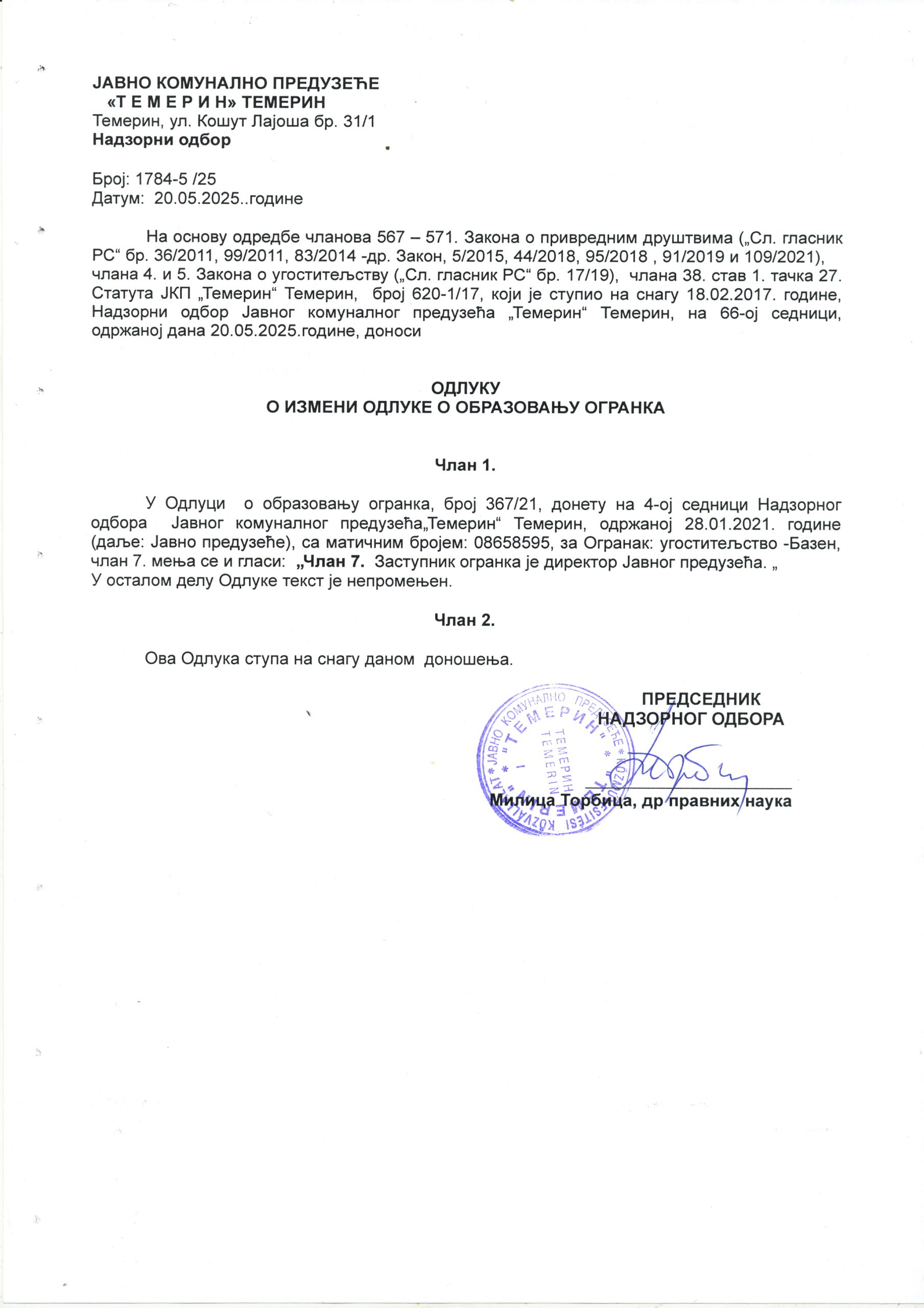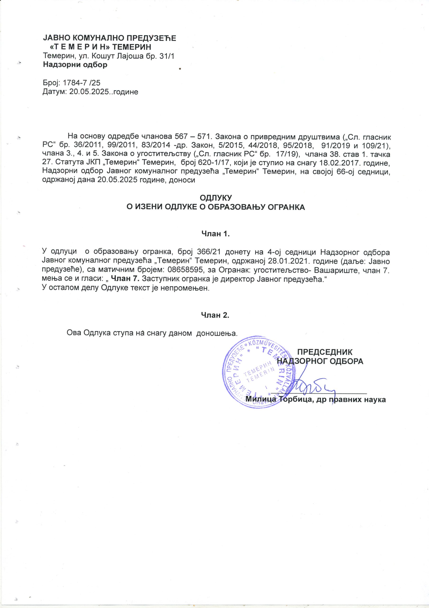 ЕЛЕКТРОНСКИ ЗАПИСНИК АУДИО СНИМАК САЗИВ ЗА 9. СЕДНИЦУ СО ТЕМЕРИН САЗИВ ЗА 9. СЕДНИЦУ СО ТЕМЕРИН НА МАЂАРСКОМ ЈЕЗИКУ САЗИВ ЗА ОДБОР ЗА БУЏЕТ И ФИНАНСИЈЕ САЗИВ ЗА ОДБОР ЗА ИЗБОР И ИМЕНОВАЊЕ САЗИВ ЗА ОДБОР ЗА ПРОПИСЕ И УПРАВУ САЗИВ ЗА ОДБОР ЗА УРБАНИЗАМ САЗИВ ЗА ОДБОР ЗА СОЦИЈАЛНА ПИТАЊА САЗИВ ЗА ОДБОР ДРУШТВЕНЕ ДЕЛАТНОСТИ САЗИВ ЗА ОДБОР ЗА ЗАШТИТУ ЖИВОТНЕ СРЕДИНЕ САЗИВ ЗА ОДБОР ЗА РАД М.З. ЗАПИСНИК СА 8. СЕДНИЦЕ СКУПШТИНЕ ОПШТИНЕ ТЕМЕРИН ЗАПИСНИК СА 8. СЕДНИЦЕ СКУПШТИНЕ ОПШТИНЕ ТЕМЕРИН НА МАЂАРСКОМ ЈЕЗИКУ 1.a ДОПУНА ДНЕВНОГ РЕДА 1.b ЗАКЉУЧАК ОВ О ПРЕДЛОГУ ОДЛУКЕ О ДОДЕЛИ ЗВАЊА И ПРИЗНАЊА 1.c ОДЛУКА О ДОДЕЛИ ЗВАЊА И ПРИЗНАЊА 1.d САГЛАСНОСТ МИНИСТАРСТВА 1.1 Закључак ОВ о завршном рачуну буџета општине Темерин за 2024 1.2 Одлука о завршном рачуну буџета за 2024 1.3 Извештај ревизора за 2024 2.1 Закључак ОВ о ребалансу буџета 2.2 Одлука о ребалансу буџета за 2025 3.1 Закључак ОВ о измени Кадровског плана за 2025 3.2 Кадровски план за 2025 4.1 Закључак ОВ о Годишњем програму заштите, уређења и коришћења пољопривредног земљишта за 2025 4.2 Годишњи програм заштите, уређења и коришћења пољопривредног земљишта за 2025 4.3 Сагласност на Годишњи програм заштите, уређења и коришћења пољпоривредног земљишта 5.1 Закључак ОВ Одлуке о давању сагласности за отпис јавних прихода Фул протект 5.2 Закључак за Фул преоткт 5.3 Одлука о давању сагласности за отпис уступљених јавних прихода ФУЛ ПРОТЕКТ 6.1 Закључак ОВ о трећој измени Одлуке о МЗ 6.2 Одлука о трећој измени Одлуке о МЗ 7.1 Закључак ОВ Одлуке о социјалној заштити на територији општине Темерин 7.2 Одлука о социјалној заштити на територији општине Темерин 8.1 Закључак ОВ- Одлука о методологији утврђивања цена услуга социјалне заштите 8.2 Одлука о методологији утврђивања цене услуга социјалне заштите 9.1 Закључак ОВ Одлуке о измени Одлуке о оснивању Центра за пружање услуга соц. заштите 9.2 Одлука о измени Одлуке о оснивању Центра за пружање услуга соц. заштите 9.3 Допис Центра за пружањеуслуга соц. заштите 9.4 Закључак УО Одлуке о оснивању Центра за пружање услуга соц. заштите 10.1 Закључак ОВ о допуни Одлуке о остваривању права на једнократну новчану помоћ за новорођено дете 10.2 Одлука о остваривању права на једнократну новчану помоћ за новорођено дете 11.1 Закључак ОВ Одлуке о изради измена и допуна генералне регулације насеља Бачки Јарак 11.2 Закључак Комисије за планове 11.3 Одлука о изради измена и допуна генералне регулације насеља Бачки Јарак 12.1 Закључак ОВ о измени Одлуке о обављању комуналних делатности 12.2 Одлука о обављању комуналних делатности 13.1 Закључак ОВ о образовању огранка – базен 13.2 Одлука о измени одлуке о образовању огранка- базен 13.3 Одлука о образовању огранка – базен 14.1 Закључак ОВ о образовању огранка -вашариште 14.2 Одлука о измени Одлуке о образовању огранка – вашариште 14.3 Одлука о образовању огранка – вашариште 15.1 Закључак ОВ о образовању огранка – спортска хала 15.2 Одлука о измени одлуке о образовању огранка – спортска хала 15.3 Одлука о образовању огранка – спортска хала 16.1 Закључак ОВ о Првој измени Програма пословања ЈКП Темерин Темерин за 2025 16.2 Прва измена програма пословања и Одлука НО за 2025 ЈКП Темарин Темерин 17.1 Закључак ОВ о Првој измени Посебног програма ЈКП Темерин Темерин за 2025 17.2 Прва измена посебног програма пословања и Одлука НО ЈКП Темерин Темерин за 2025 18.1 Закључак ОВ о Програму пословања Јавног комуналног преду